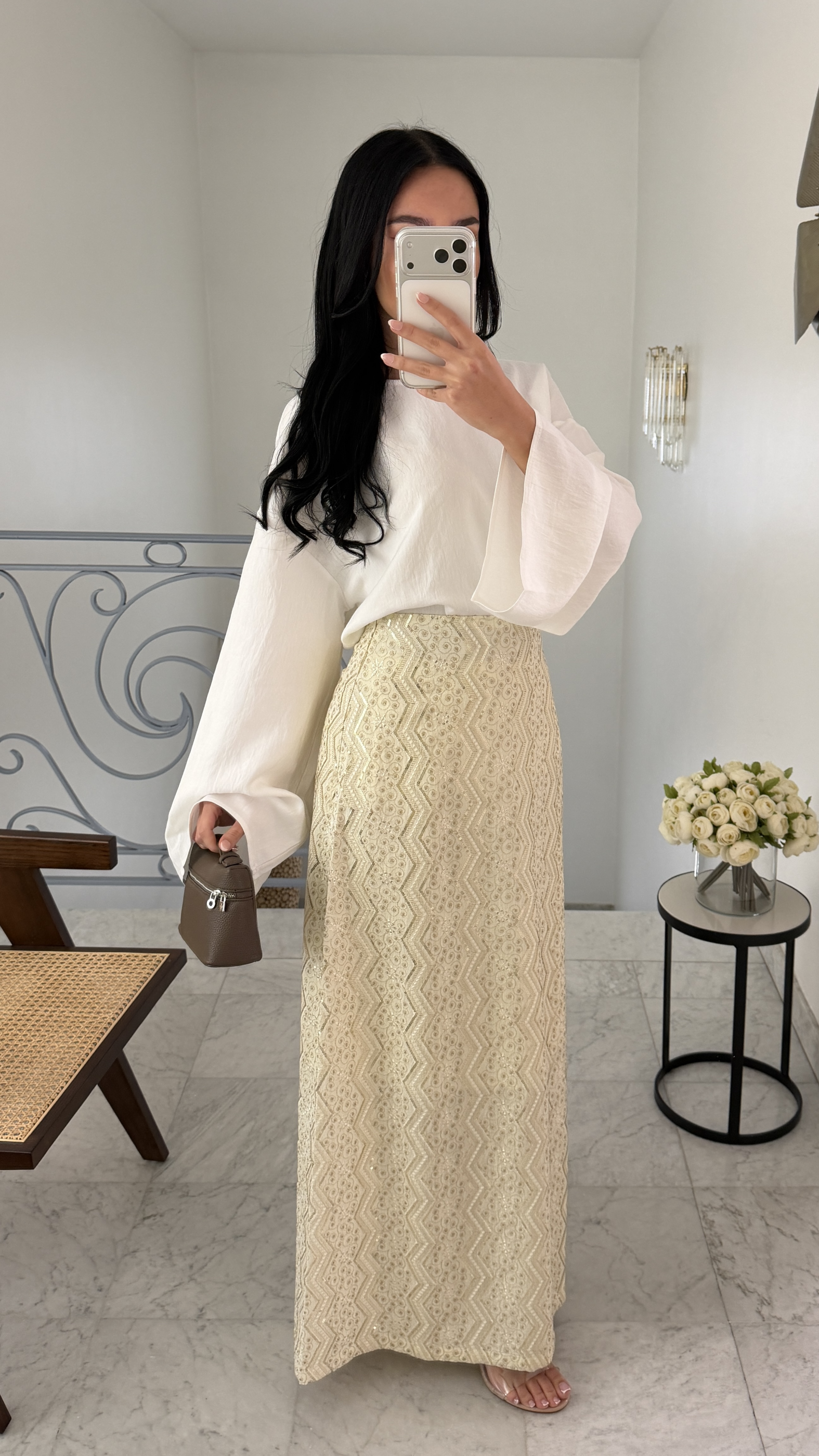 Coupe fluide et majestueuse, inspirée des silhouettes koweïtiennes avec une allure structurée et élégante.