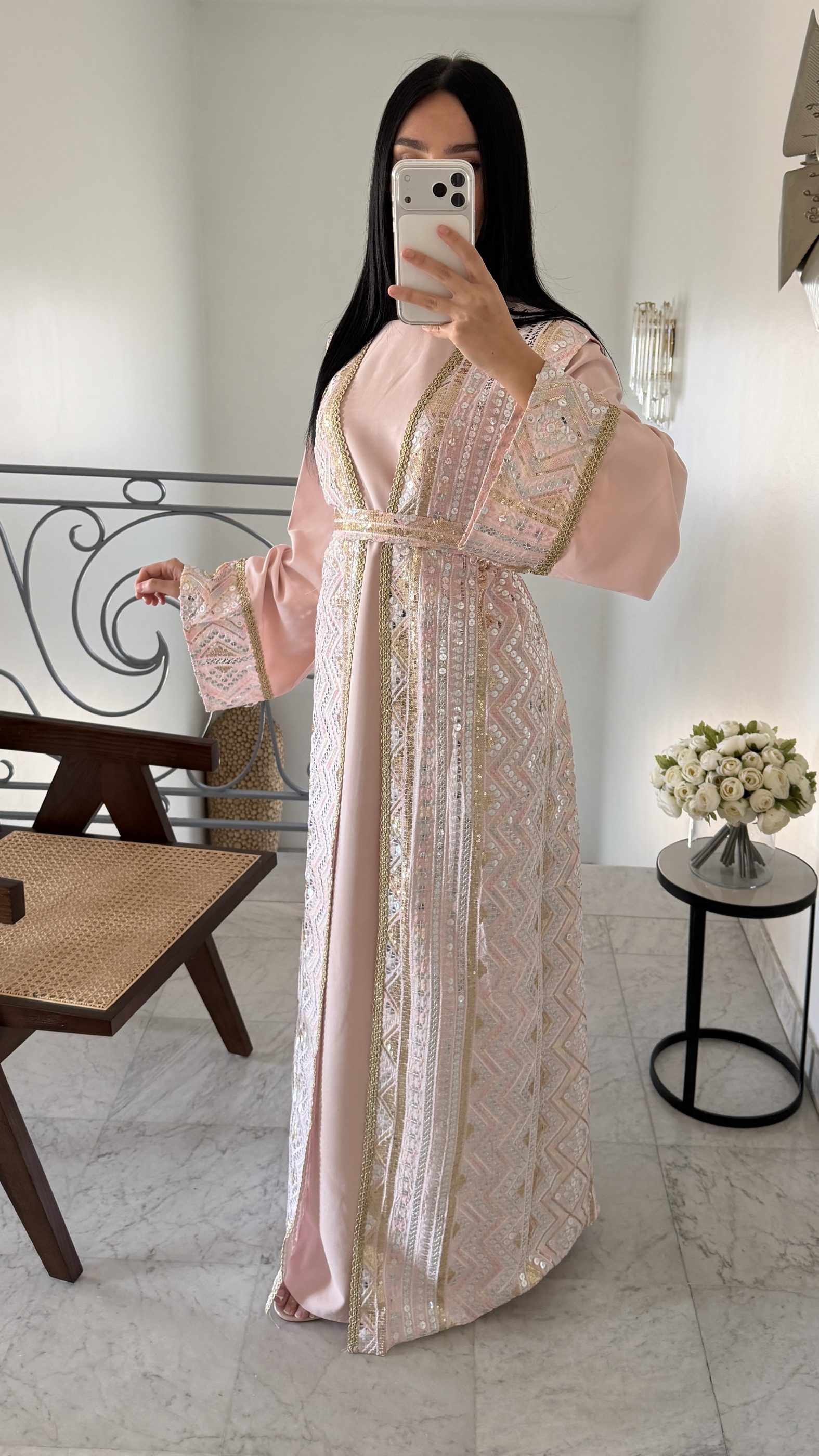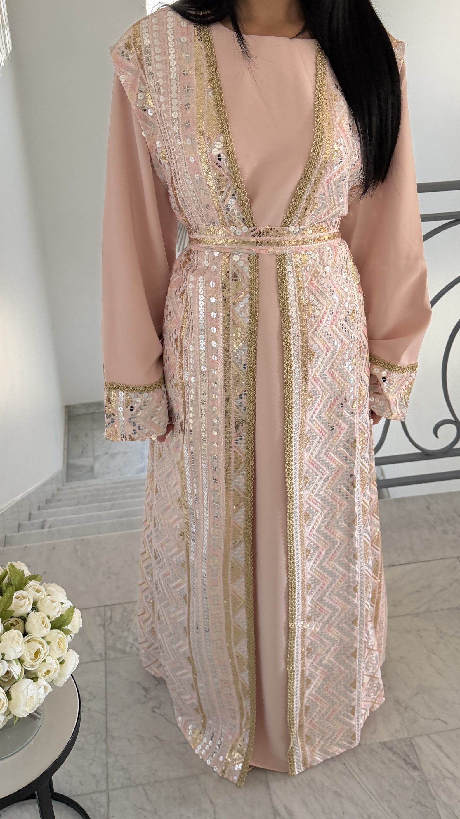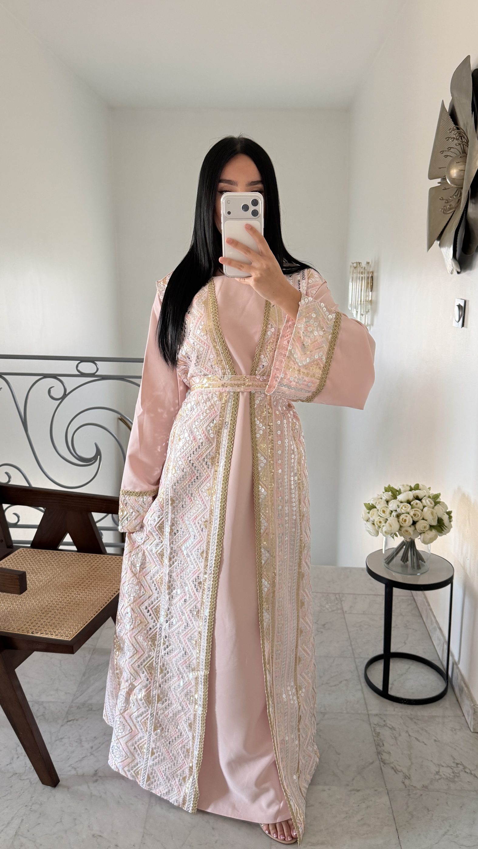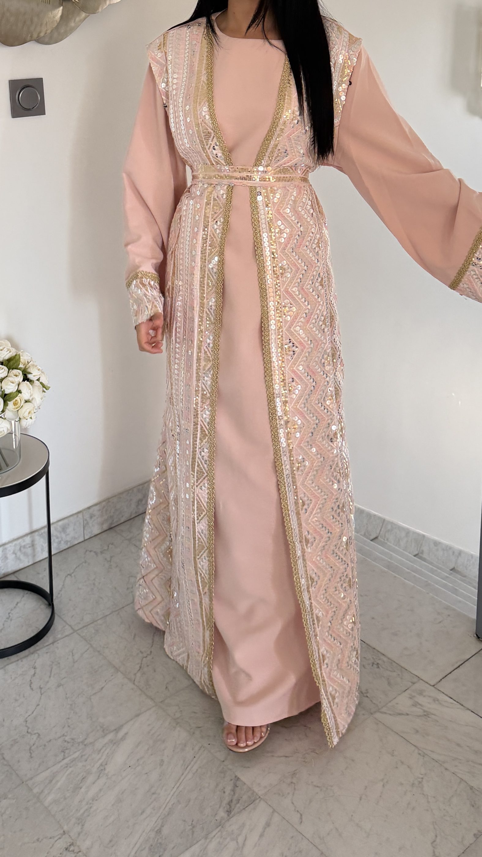 Ensemble kimono sans manches effet caftan [ROSE]