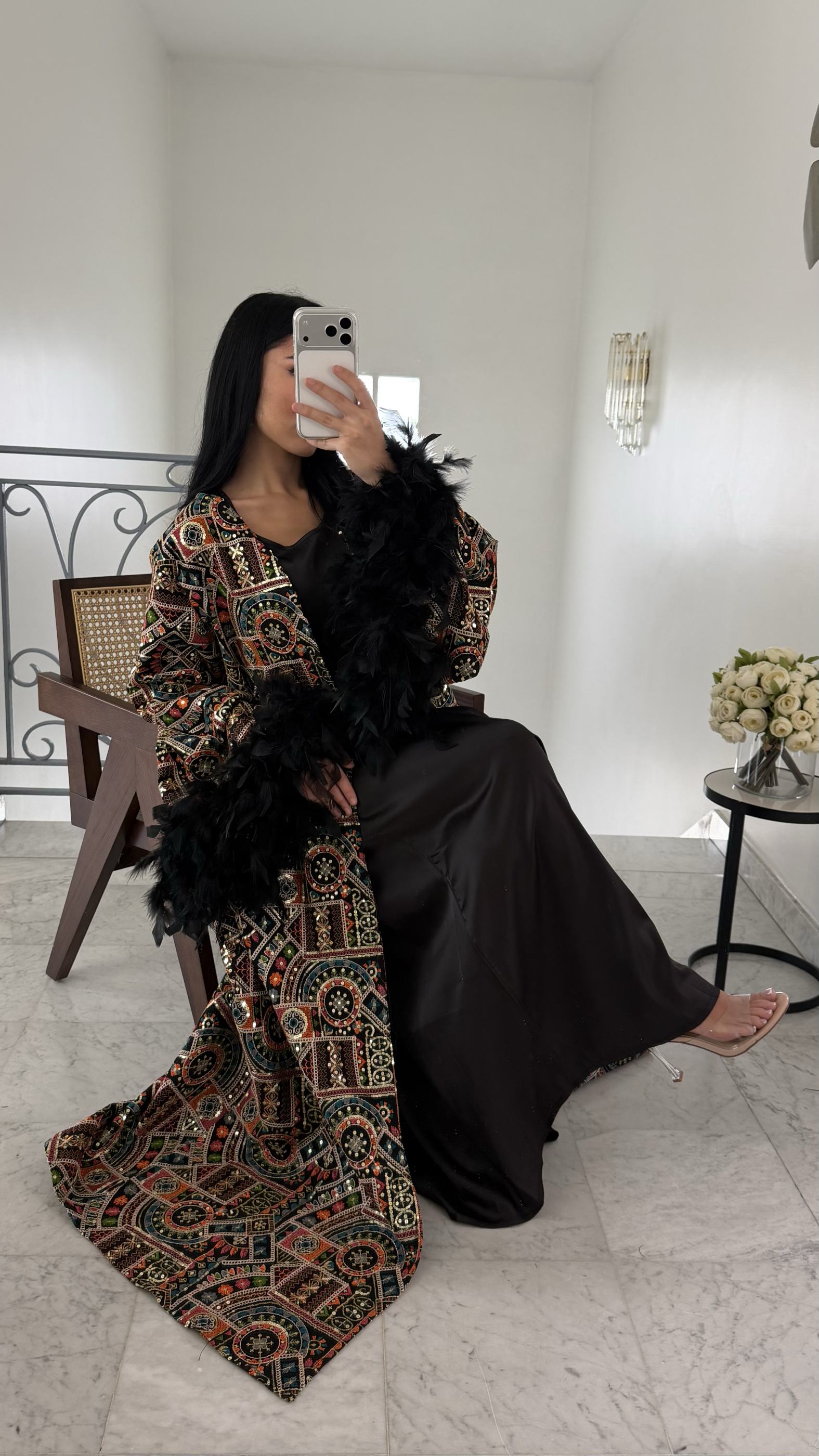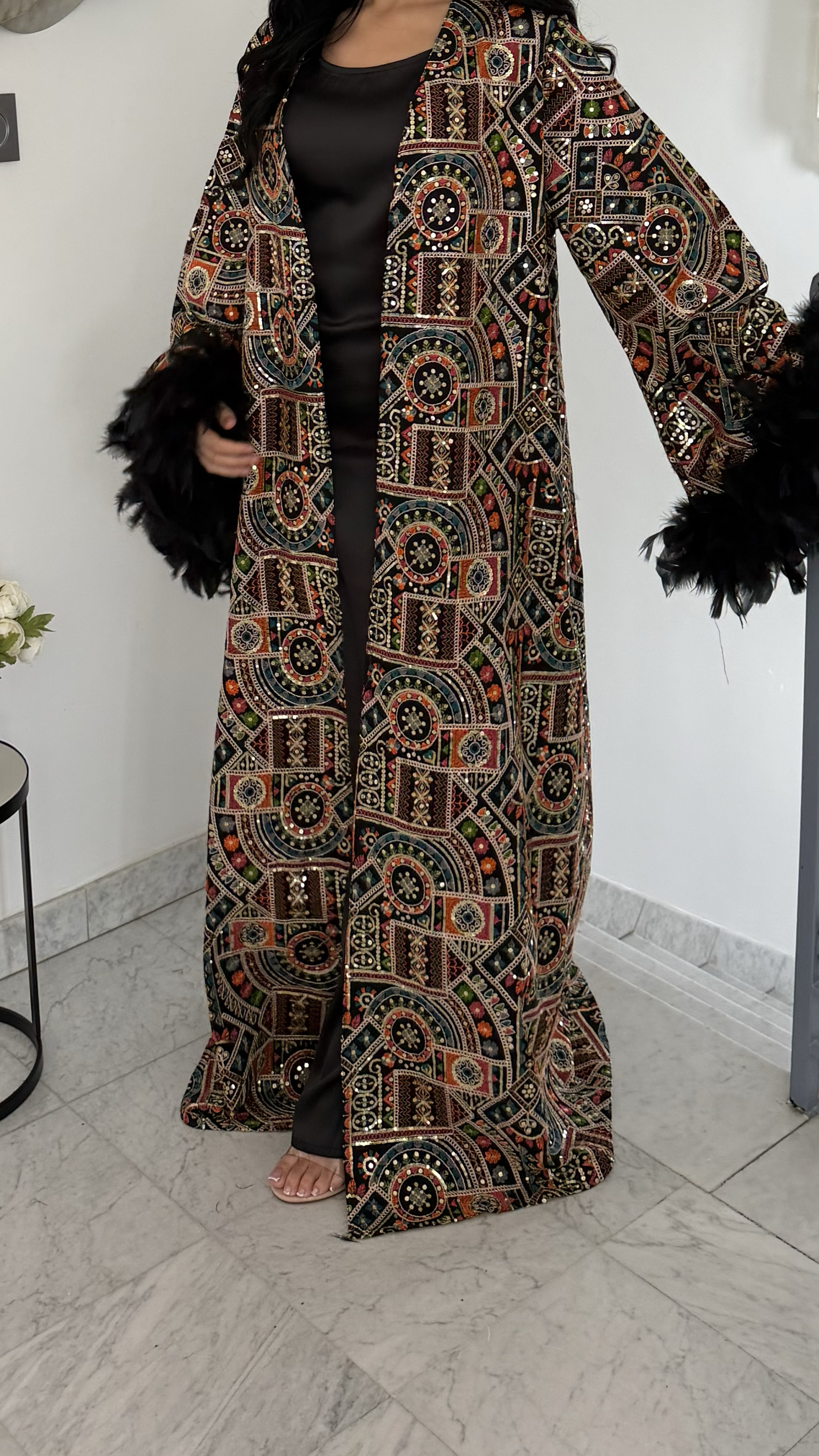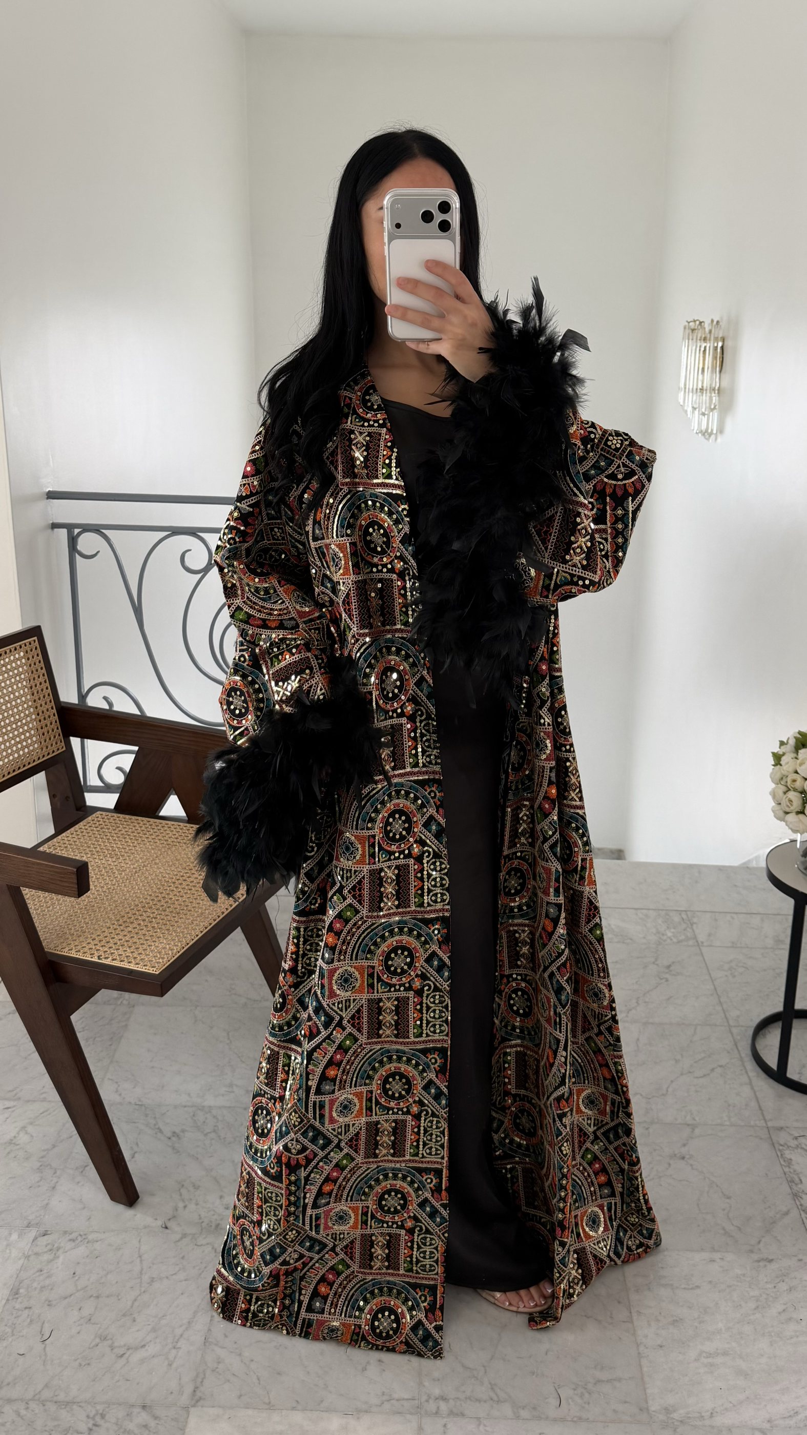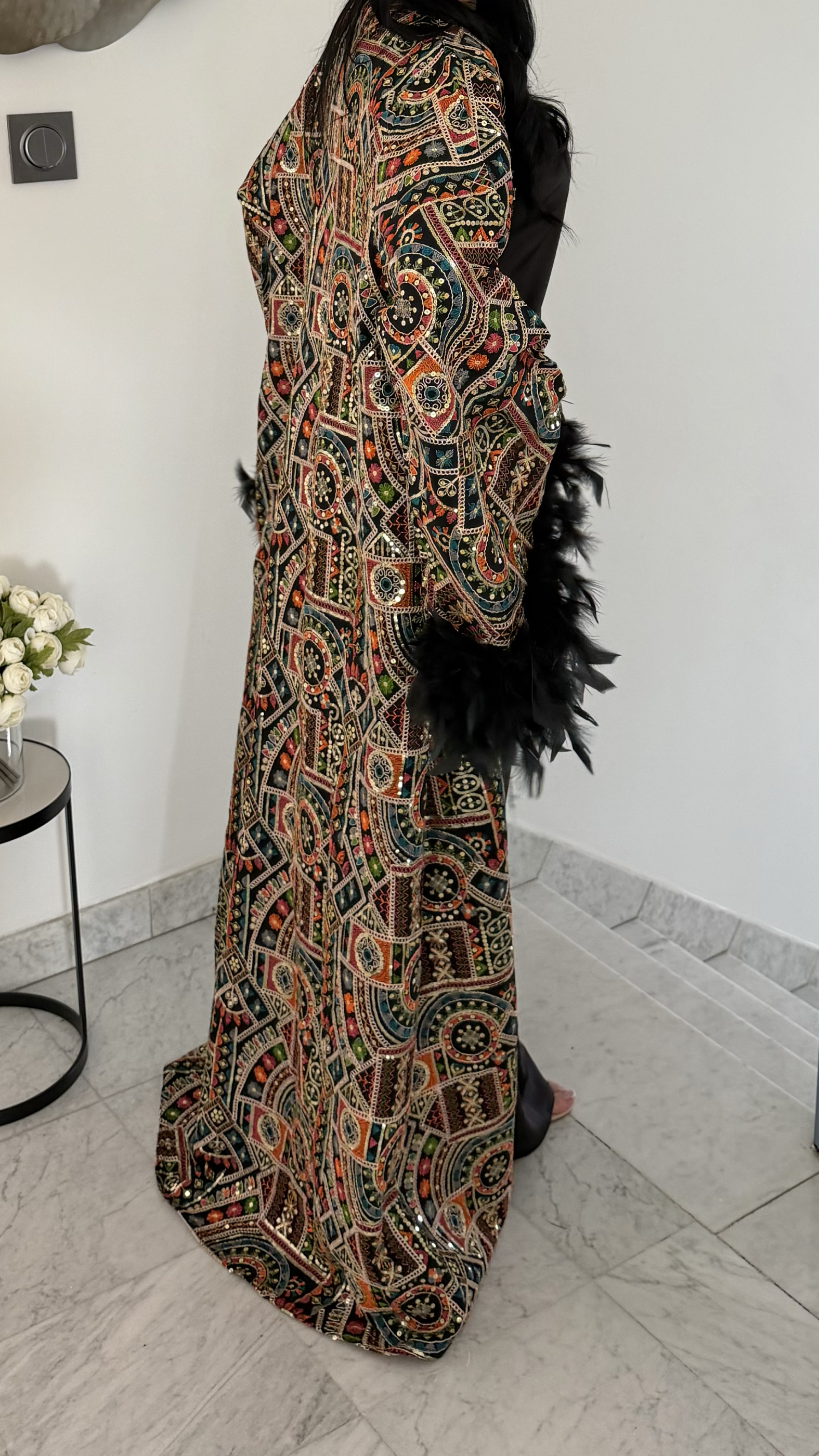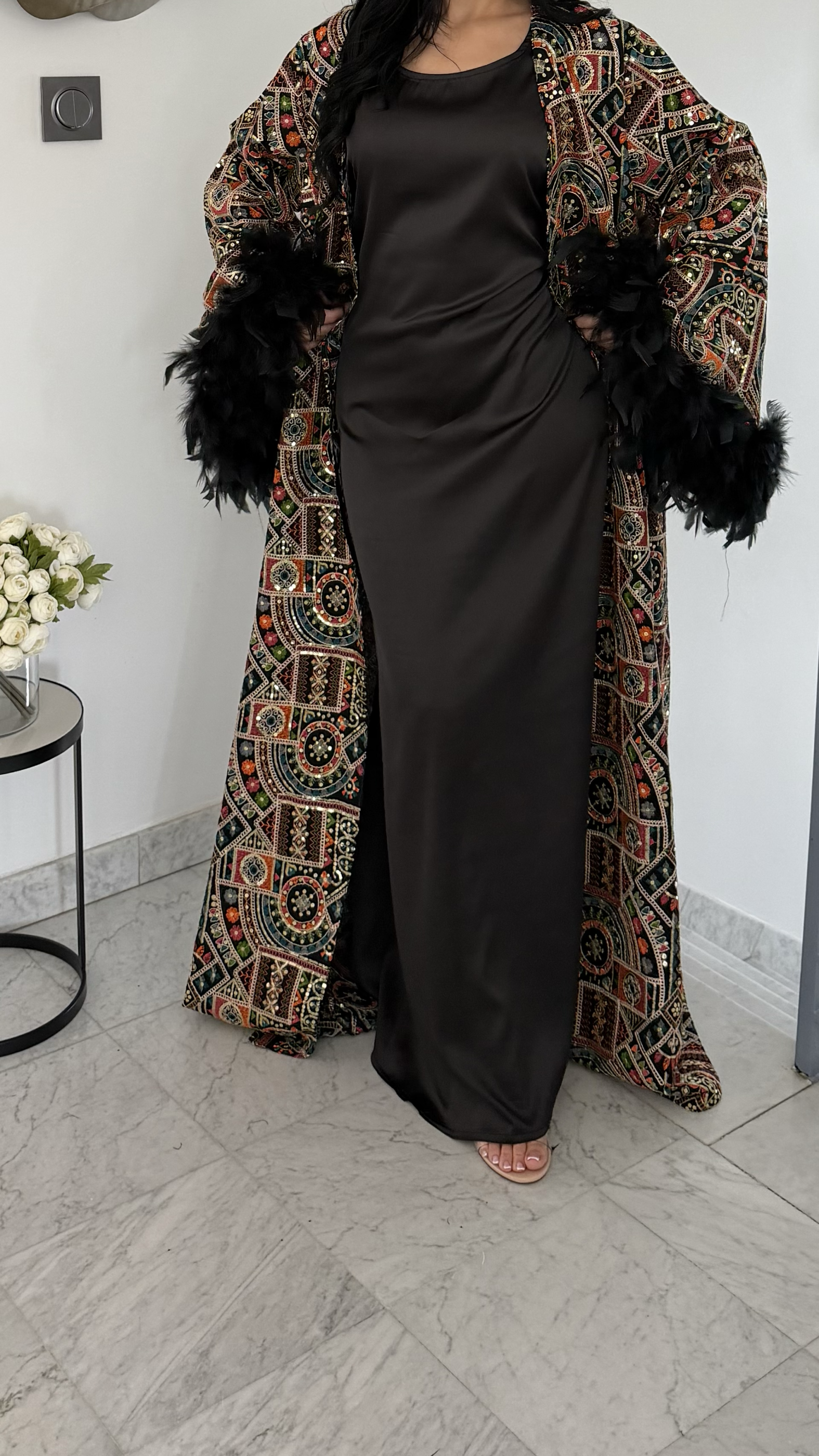 – Finitions en plumes noires aux poignets (quelques plumes peuvent se retirer au départ)