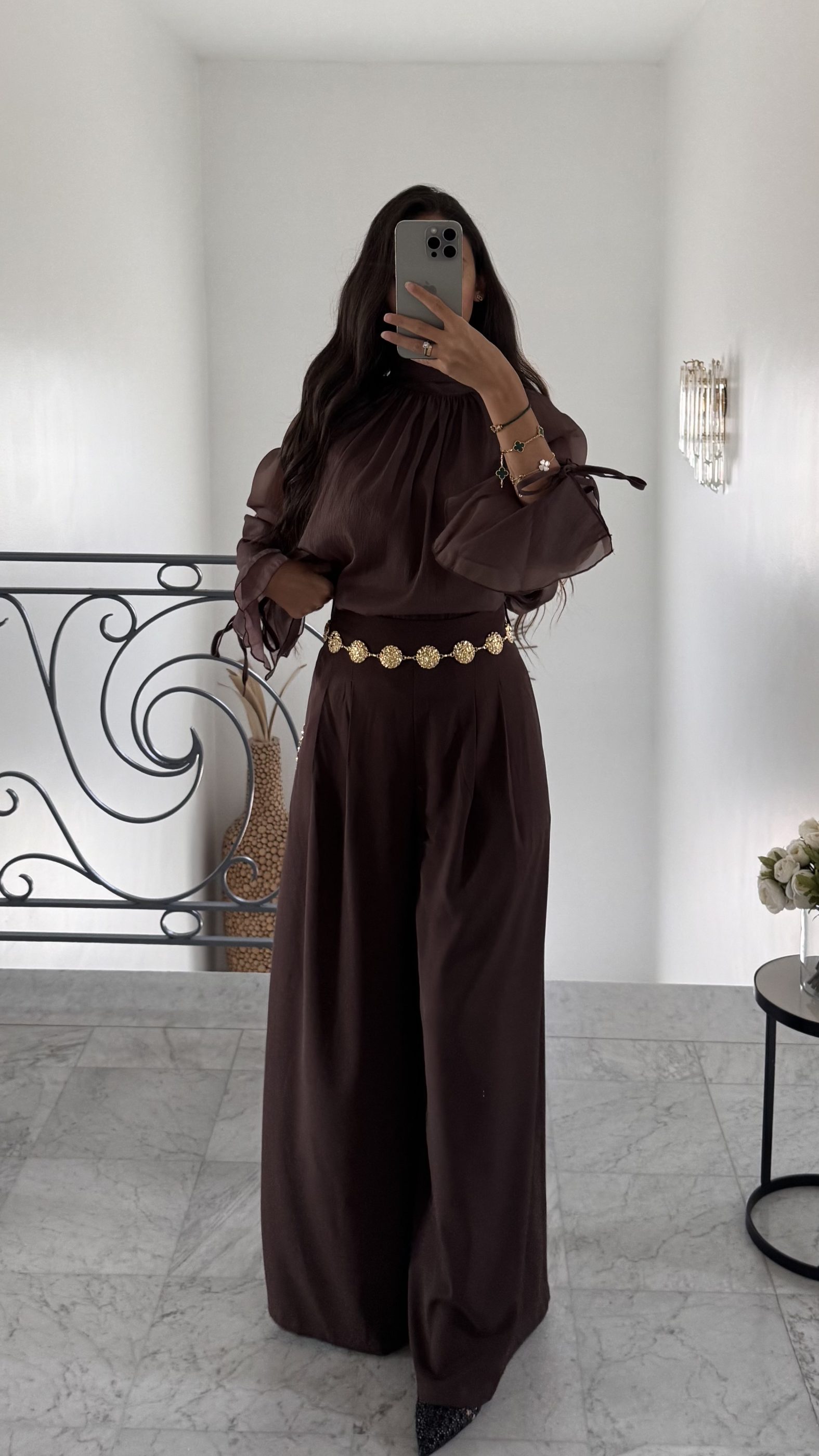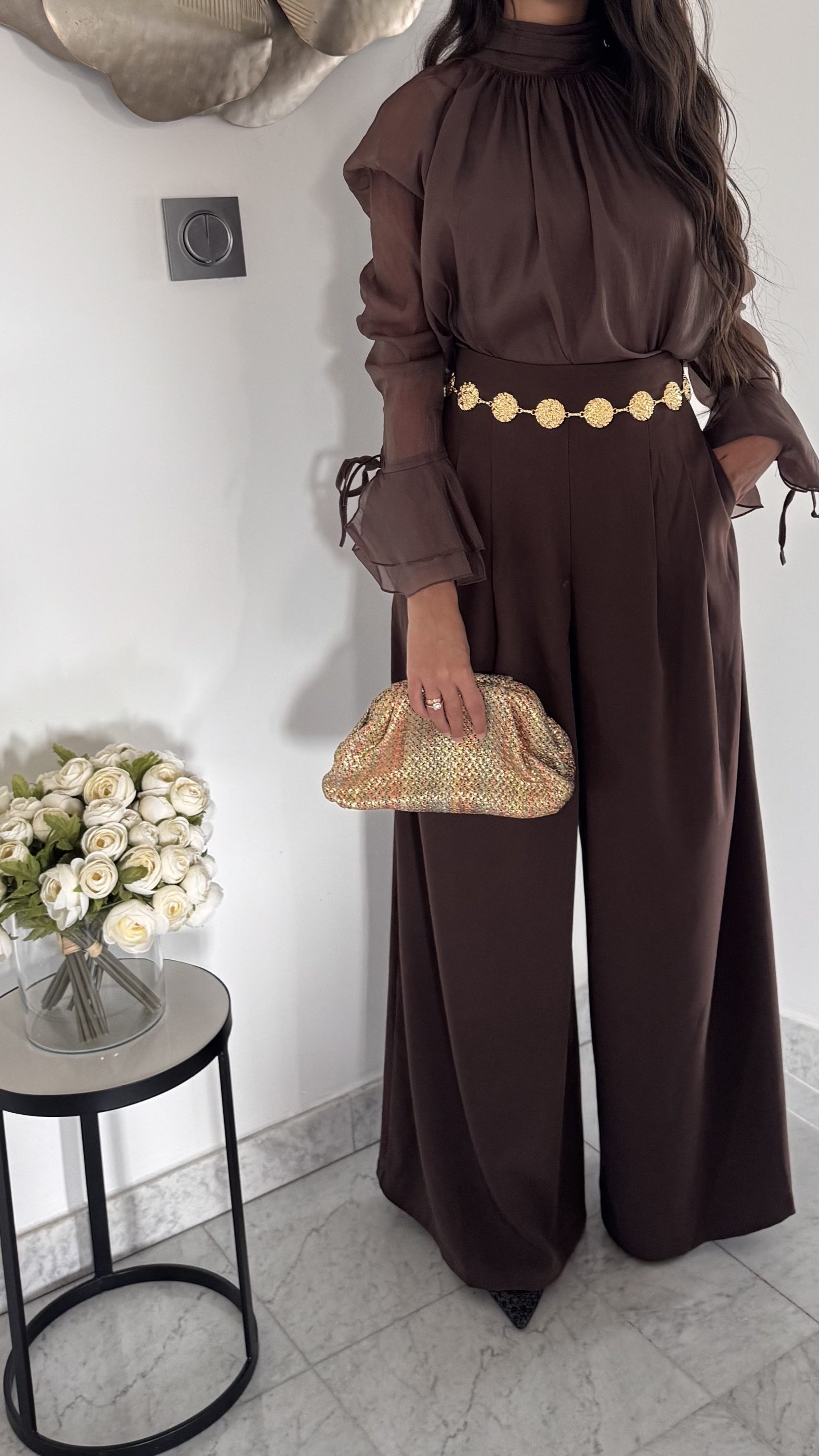 Pantalon fluide à chaîne [CHOCO]